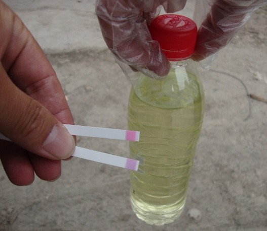 浙江水環(huán)境調(diào)查組調(diào)查發(fā)現(xiàn),在該廠區(qū)東側(cè)圍墻外,有多根白色PVC管,其中有一根一端埋在地下,入土部分用水泥槽圈圍,水泥槽腐蝕嚴(yán)重,槽內(nèi)有強(qiáng)酸性水囤積并有流動跡象,但不見污水滿溢。