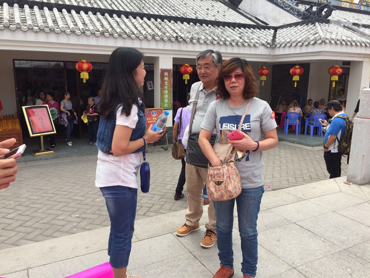 在經(jīng)過了四小時的車程后,于中午時分到達(dá)了素有中國的馬爾代夫之稱的惠東巽寮灣。一行人一下車便開始了第一項拓展挑戰(zhàn)——人員分成三組,分別找到天后宮的正門及概念銷售手中的礦泉水,且銷售出去后水還在手中。巽寮灣的景點之一的天后宮在這天正好遇上一年一度的媽祖誕辰,各地的旅游團和朝拜人士都從五湖四海聚擁而至,人山人海的場面相當(dāng)熱鬧。